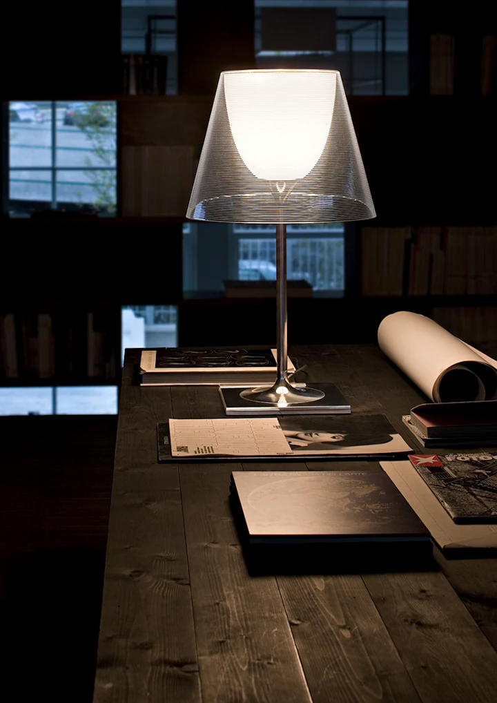 透明ポリカーボネート製セードのK TRIBE(ケートライブ)は、モダンで軽快な印象。美しく磨かれた、堅牢で質感の高いアルミダイキャストの本体との組み合わせが上質なインテリア空間を演出します。明かりをつけると、インナーディフューザーのシルエットが浮かび、様々なシーンを美しく演出します。二重のシェードを採用することで、灯時と消灯時で2つの表情を楽しめるライトです。